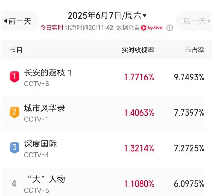 6 月 7 日晚,《长安的荔枝》在央视八套首播,同时在腾讯视频全网独播。